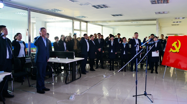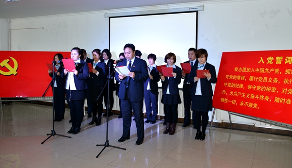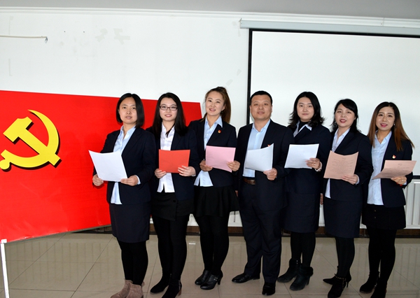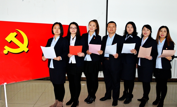 最后,全体党员面向党旗,在营销中心党总支书记张军的带领下,举起右拳重温入党誓词,“我志愿加入中国共产党……”,坚定有力的誓言在室内回荡,在场的每一位党员都接受了一次深刻的党性教育和灵魂洗礼。