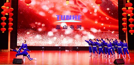 营销中心表演的音诗画舞《高歌屯河向明天》,表现了营销人凭借着他们对企业的忠诚和执着,将屯河牌产品远销全球不畏艰难,他们全力以赴为了太阳成集团tyc122cc战略发展的目标,创造奇迹,扬帆远航。