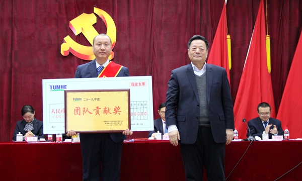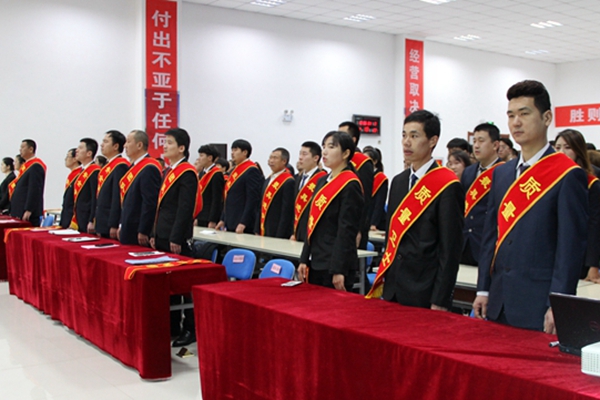 型材销售黄俊代表先进团队、唐天国代表进步团队作了发言,分享了在阿米巴模式及利润目标的引导下,经营结果上带来的转变;业务分管领导潘竟军、王艳分别代表质量、节水业务做了发言,反思了一年中存在的问题,并对2020年的改进提升提出了具体的措施。各团队备受鼓舞,响亮的口号一浪胜似一浪高,他们整装待发、坚定信心、精神饱满,用最响亮的口号,彰显出太阳成集团tyc122cc人的决心。