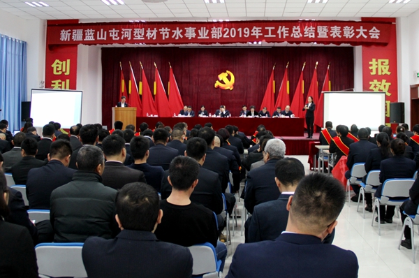 嘹亮的歌声,动人心魄。近日,型材节水事业部召开了2019年工作总结暨表彰大会,总公司总经理李鹏,副总经理刘华、张军,总调度长张淮林及事业部158名干部职工代表参加了大会。