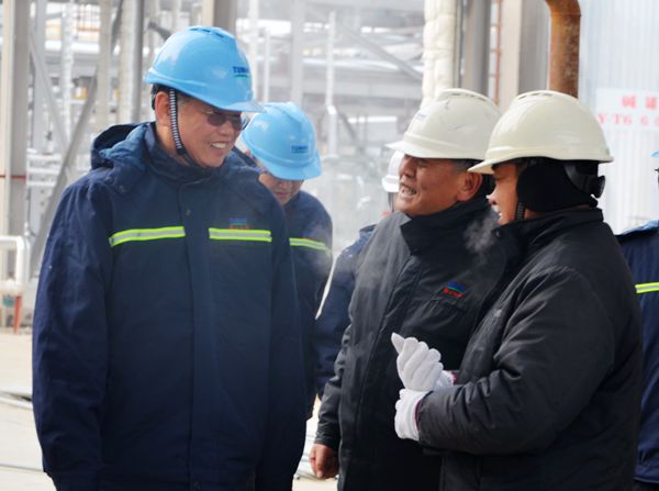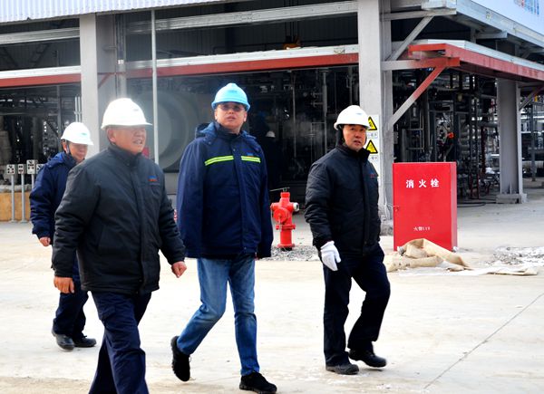 会后,在潘哆吉等班子领导的陪同下,杜北伟一行亲临二期BDO项目建设现场进行调研和指导,详细了解建设进度及试生产准备情况。