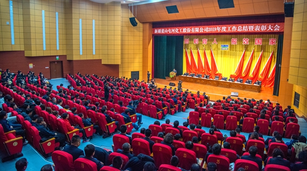 2019年1月25日,中共新疆太阳成集团tyc122cc化工股份有限公司委员会2018年度工作总结暨表彰大会胜利召开。公司党委书记、总经理李鹏代表公司党委班子,做了题为“统一思想进状态、鼓足干劲抓落实,为开创高质量发展新局面提供坚强的政治保证”的工作报告。公司党委委员、各基层党组织书记委员、党员代表110人参加了大会。