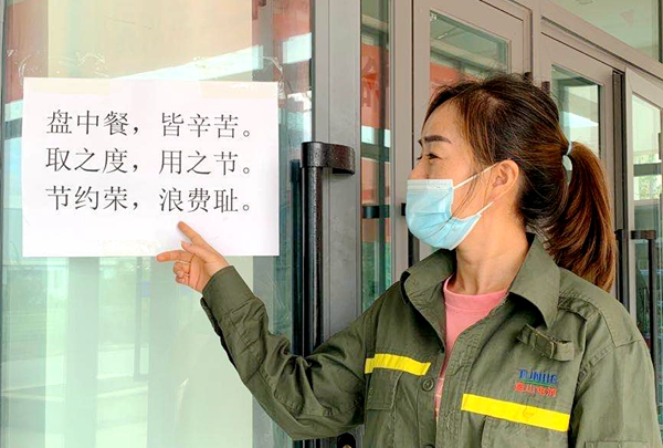 加强食堂管理,开展养成教育。各中心、事业部以绿色食堂建设为抓手,加强食堂用餐节约,做好食品采购、储存和加工等工作,按需按量供给。开展勤俭节约养成教育,在醒目位置设置不剩饭、不剩菜标识,营造浪费可耻、节约为荣的氛围,引导职工适量点餐、适量取食,不挑食、不剩饭、不倒饭,自觉抵制铺张浪费行为。