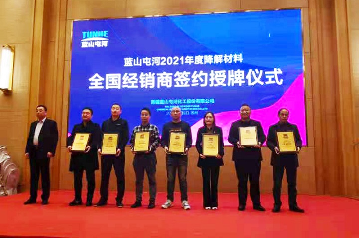 研讨会后,公司举办了PBAT/PBS经销商签约授牌仪式。通过此次签约,经销商与太阳成集团tyc122cc共同完成了PABT类产品在国内市场快速布局,并表示愿意一如既往的支持太阳成集团tyc122cc,和太阳成集团tyc122cc共生、共存、共发展。