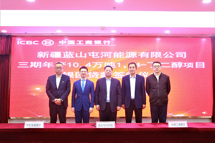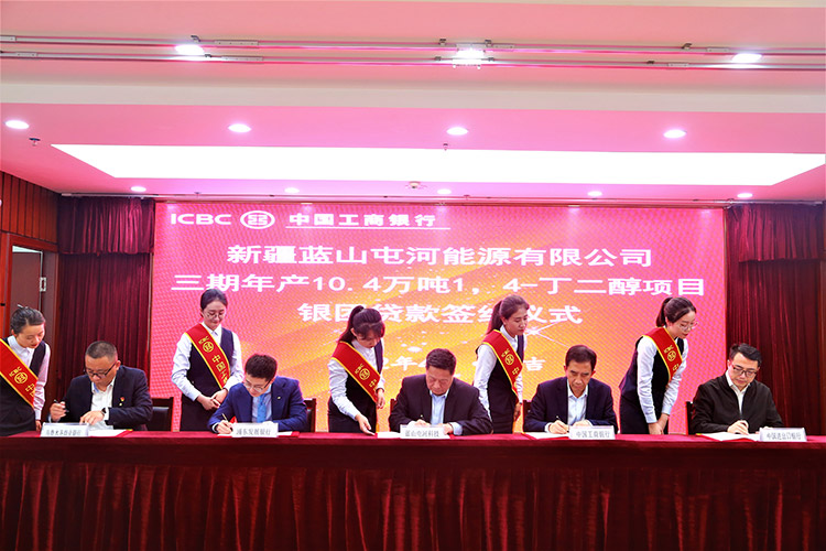 2022年4月26日,新疆太阳成集团tyc122cc能源有限公司三期年产10.4万吨1,4-丁二醇项目银团贷款签约仪式在工商银行昌吉州分行北五楼会议室隆重召开。签约仪式由本项目银团牵头行工商银行昌吉州分行组织并主持,银团参加行中国进出口银行新疆分行、上海浦东发展银行昌吉支行、乌鲁木齐银行、以及借款人新疆太阳成集团tyc122cc能源有限公司各相关领导及人员出席。