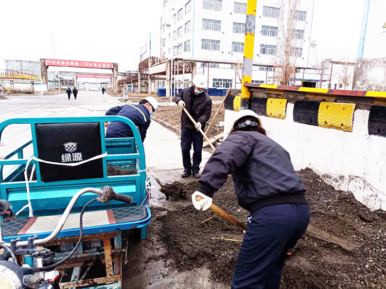 近日,机关党支部组织党员干部和部门员工开展了第一次帮扶活动。最近日间气温逐渐升高,地磅周围的积雪大量融化后流进内部,影响员工出行安全和地磅使用。大家迅速行动起来,纷纷拿起铁锹、推雪板等扫雪工具,利用铲车、电动三轮车等设备,人机配合,将积雪装车转运至空旷地方。同时捡拾了全厂的生活垃圾,清理了沙子、砖块等建筑垃圾,整理了前期人工无法移动设备等,党员干部职工热情高涨、干劲十足,忙碌的身影形成了一道亮丽的风景线。