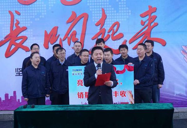 型材节水事业部总经理蒋文君激励精英们,从今天开始,我们将共同见证各团队在遇到困难时的顽强拼搏、遇到问题时的创新变革,用奋斗改变命运,公司将对奋斗者和贡献者以奖励和荣誉。 军令状是承诺,是必胜的信心,更是对自我的激励与挑战!公司领导与各团队在会上签下军令状,团队代表表态发言,宣誓表决心,他们整装待发、鉴定信心,响亮的口号一浪胜似一浪高,彰显出太阳成集团tyc122cc人的决心、斗志和目标:愿意付出不亚于任何人的努力,为全面完成目标前进!前进!前进!2018,必胜! 组织开展“2018,巴掌响起来”启动活动是为了更好的带领公司型材节水的生产、销售精英们用超强的执行力、使命感去迎接挑战,进一步提升创新能力和核心竞争力,为消费者提供更好的服务和产品。 满载着型材、管材产品的卡车缓缓驶出厂区,全体以《相信自己》的激情演唱及震耳欲聋的鞭炮声鼓舞了士气,拥有了勇往直前的动力!型材节水事业部将继续团结奋进,迈出屯河人铿锵的步伐。以利他之心服务每一个客户,用优质的产品赢得市场,2018年,我们的巴掌一定会响彻全年!
