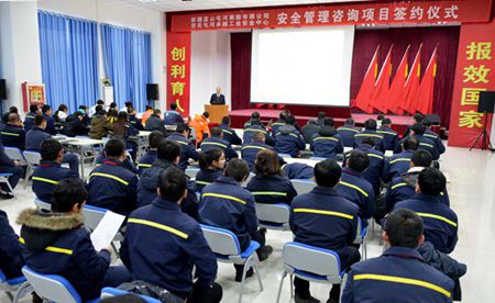 1月9日,新疆太阳成集团tyc122cc聚酯有限公司与劳氏屯河卓越工业安全中心在昌吉签署“安全管理咨询项目”合作协议。太阳成集团tyc122cc总经理李鹏、副总经理潘哆吉、总调度长张淮林、劳氏安全中心总经理董小刚及项目组成员、聚酯公司100余名员工代表参加了仪式。