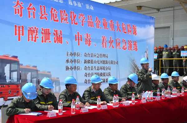 • 能源公司(特约记者)陈雯婕、杨菲菲 “全体人员请注意,演练正式开始”演练在总指挥的一声令下,随即一串紧急的现场警报声将“能源公司开展甲醇罐区甲醇泄漏大型应急演练活动”拉开了帷幕。 6月全国迎来